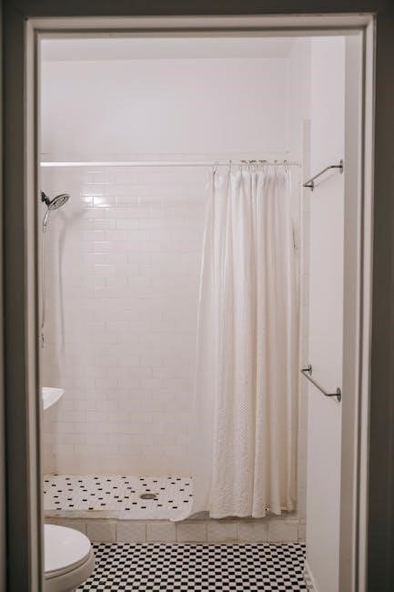 Consider the bathroom’s layout; a longer curtain offers better coverage. If you have a standard bathtub, 72 inches usually suffices. However, for walk-in showers or higher rod placements, an extra-long curtain is recommended. Remember to account for any overlap needed for the rod’s hooks or rings. Accurate measurement ensures a functional and aesthetically pleasing result, keeping your bathroom floor dry and safe.